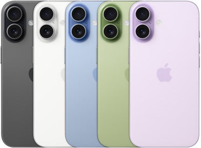 iPhone with 6.3" display, A19 chip, 48MP dual camera, 18MP front camera, up to 1TB storage, and 33-hour video playback.